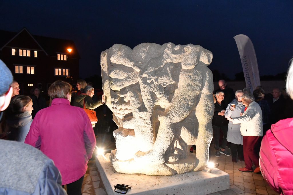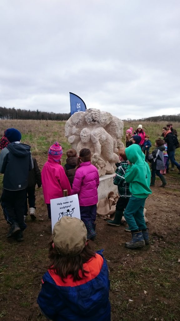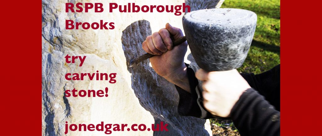 J – Yes, that was a sort of trial or prototype of starting to engage more with the public – it started as a ‘barter’ of location for the stone – I needed somewhere with very very good footfall and there was a very established café/restaurant, as well as the RSPB being well-established there – lots of walkers….. I stationed a block of stone, and analysed the days of the week when we could best engage with groups of people – so, if I could engage people with them having a hands-on go with the tools, and doing more than just talking, they became – guardians – I suppose, guardians of the block. I am increasingly conscious that, ‘touch wood’, not one of the raw Portland stone works – Pulborough, the top of Slindon Down, Lewes, the Devil’s Punchbowl, Horsham – has been vandalised. Kids climb on them…feel it’s theirs. Is there something – spiritual…..or…..?